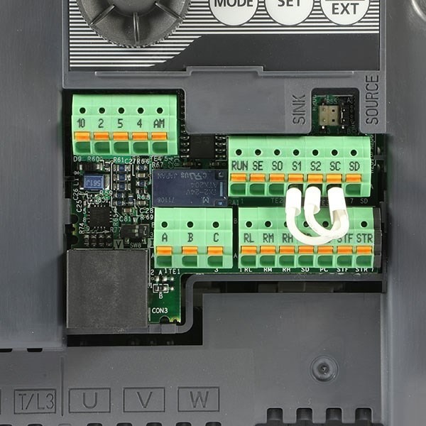 Tín hiệu đầu vào5 điểm, chọn từ: chọn tốc độ đa cấp, điều khiển từ xa, chọn chức năng thứ hai, chọn ngõ 4, JOG, PID, ngõ vào ngoài, chuyển PU ngoài, chuyển đổi V/F, giữ tự động, quay thuận/nghịch, reset biến tần, chuyển PU-NET, chuyển NET ngoài, chuyển chế độ lệnh, tín hiệu cho phép vận hành biến tần, khóa vận hành ngoài PU