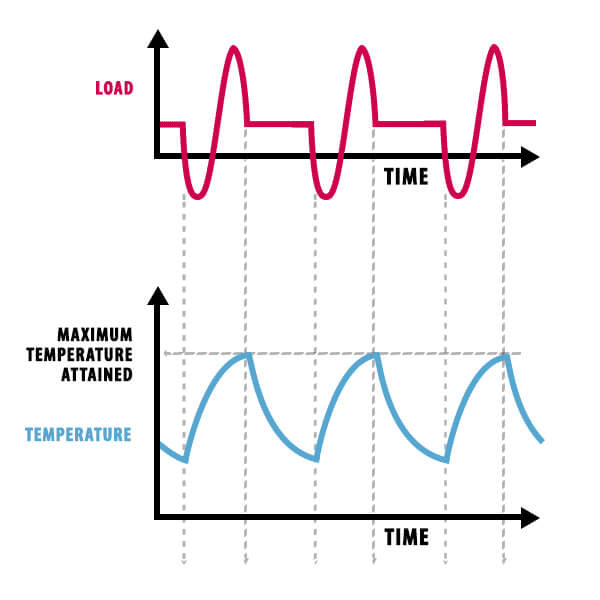 - Động cơ lặp lại các chu kỳ chạy-nghỉ, với thời gian chạy ngắn hơn thời gian cần để đạt cân bằng nhiệt.