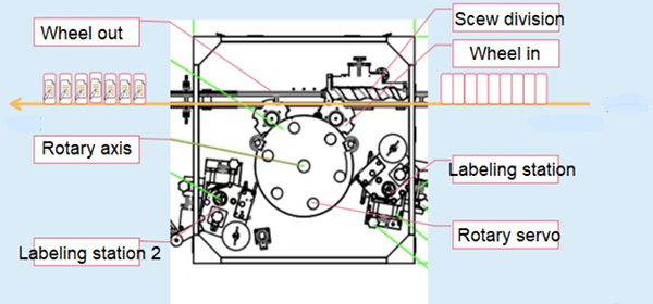 Máy dán nhãn quay vận chuyển sản phẩm thông qua băng chuyền, sau đó đưa vào bàn xoay nhờ hệ thống đẩy sản phẩm. Bàn xoay sẽ liên tục xoay sản phẩm đến 2 đến 3 trạm dán nhãn để thực hiện quá trình dán.