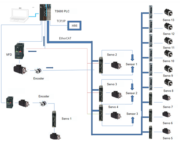 Giải pháp này sử dụng công nghệ điều khiển DA200 và TS634 nhằm đảm bảo máy cán hoạt động ổn định và tin cậy. Hệ thống điều khiển sử dụng bus EtherCAT để loại bỏ nhiễu xung, nâng cao độ chính xác định vị và cải thiện tốc độ phản hồi. Tính năng ghi nhớ đơn hàng giúp chuyển đổi nhanh chóng chỉ bằng một nút bấm.