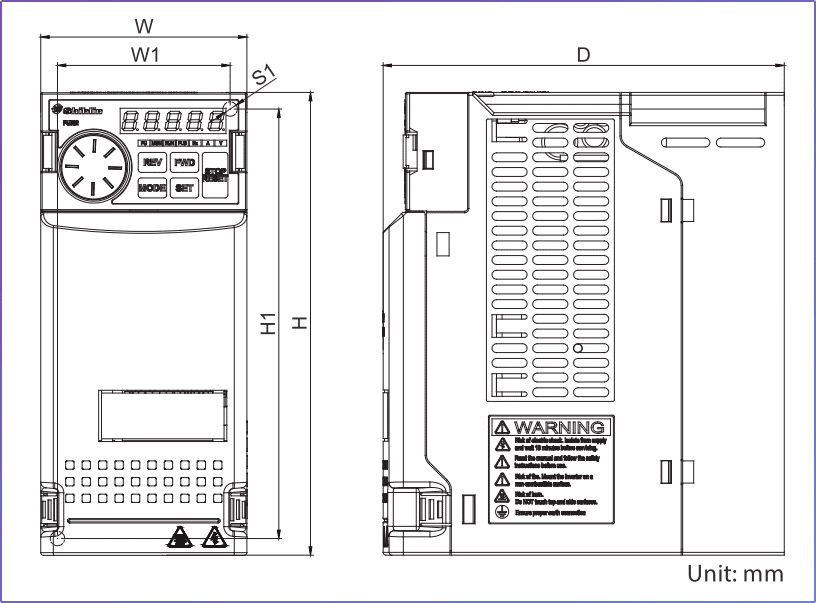Frame | Model | W (mm) | W1 (mm) | H (mm) | H1 (mm) | D (mm) | S1 (mm) |